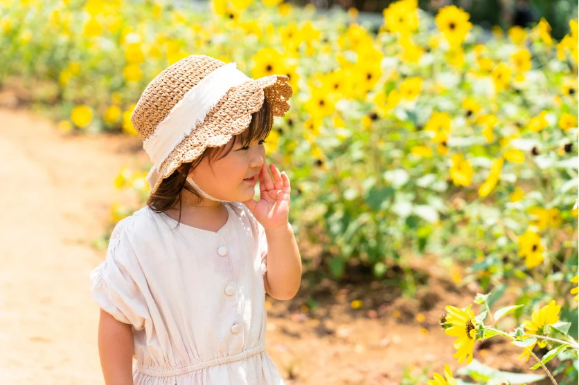 역광은 부드러운 빛이 아이를 감싸는 듯한 인상이 되기 때문에 감성적인 분위기나 사랑스러움을 더하고 싶은 경우에 적합합니다. 단지, 표정이 그림자가 되기 쉽기 때문에, 노출 보정을 0.5~1 정도 플러스해 얼굴이 찍히도록 조정하거나 해질녘 등 햇빛이 약한 타이밍으로 촬영해 봅시다.