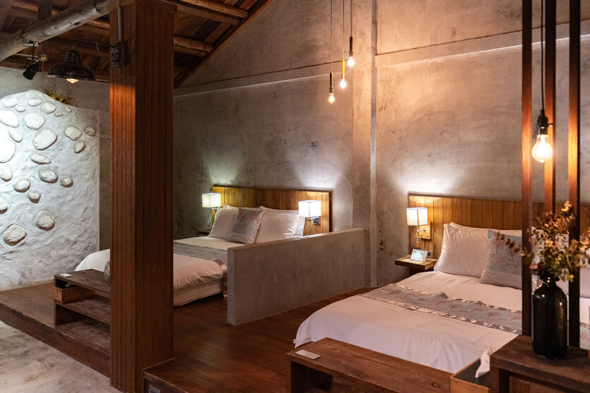 머물 숙소는 SNS에서 찾은 「트와일라잇 포레스트 (Twilight Forest / 九彬神隐之森)」입니다. 세련된 인테리어 디자인에 한눈에 반해서 예약했습니다! 방의 넓이를 표현하려면, 역시 광각 줌 렌즈가 편합니다.