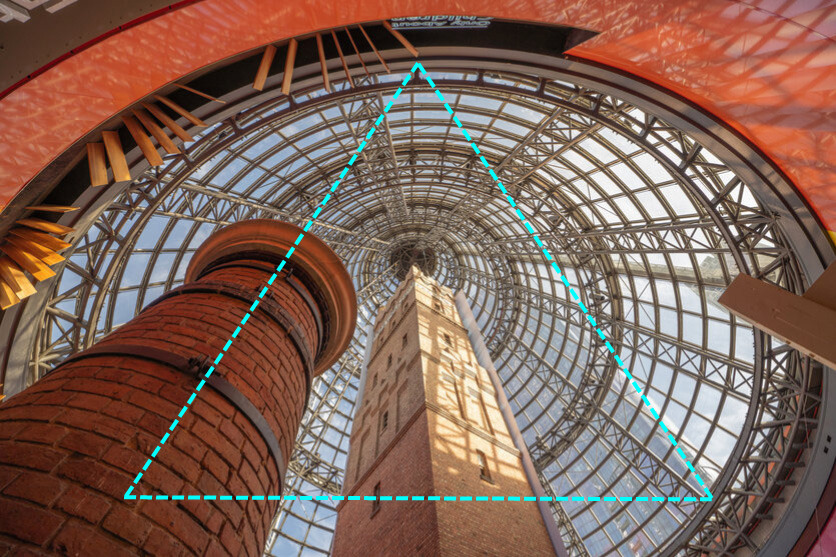 삼각 구도는, 피사체를 삼각형의 정점이나 변상에 배치한 구도를 말합니다. 자연 풍경의 형상을 그대로 이용하거나 경관, 포트레이트등의 촬영에서도 이용됩니다. 이 구도는 균형감이나 안정감을 내고 싶을 때 추천합니다. 자연 풍경의 장엄함을 표현하거나, 산이나 빌딩과 같이 큰 피사체를 밸런스 좋게 촬영할 때도 적합합니다.